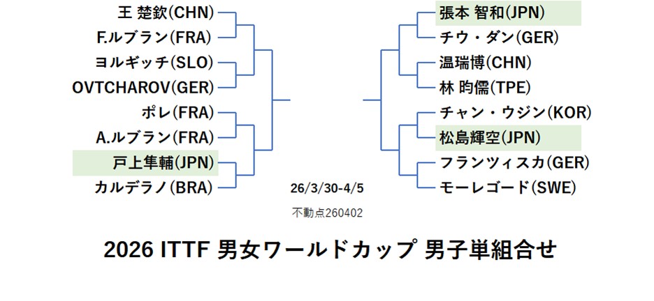 2026 ITTF 男女ワールドカップ マカオ 男子単