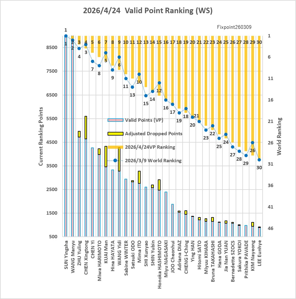 2026/4/24 Valid Point Ranking (WS) (Based on 2026 Week #11 - March 9 World Ranking)