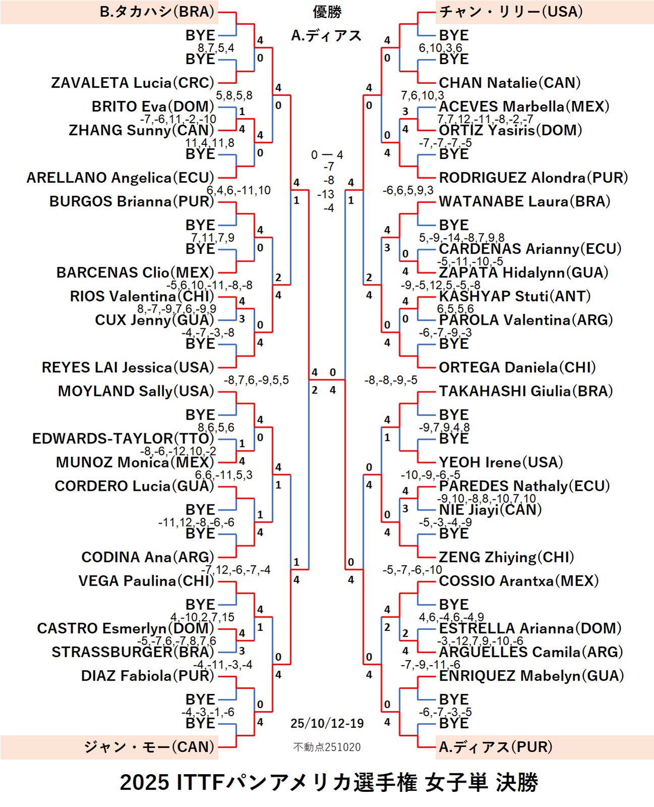 2025 ITTFパンアメリカ選手権女子単 (2025年10月12日~10月19日 South Carolina, USA)