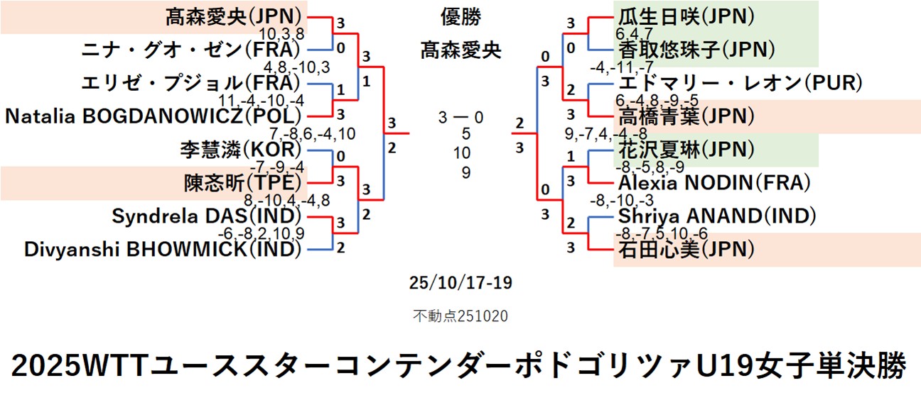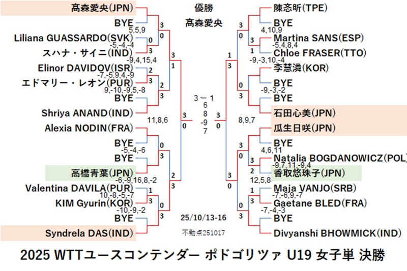 2025 WTTユーススターコンテンダー ポドゴリツァU19女子単(2025年10月17日〜10月19日 モンテネグロ)