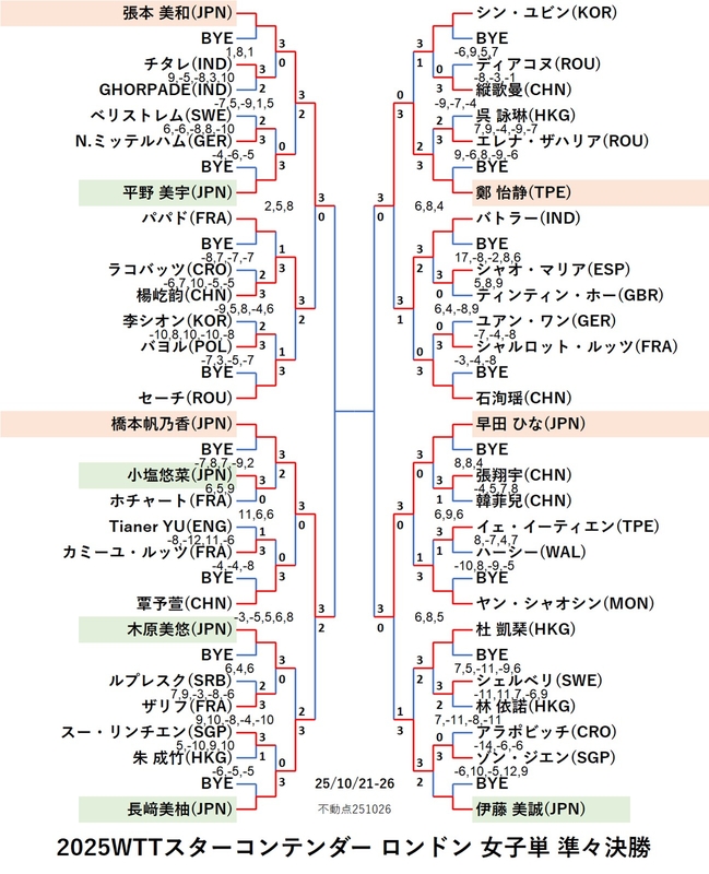 WTTチャンピオンズ横浜2025 女子単 (2025年08月07日〜08月11日)