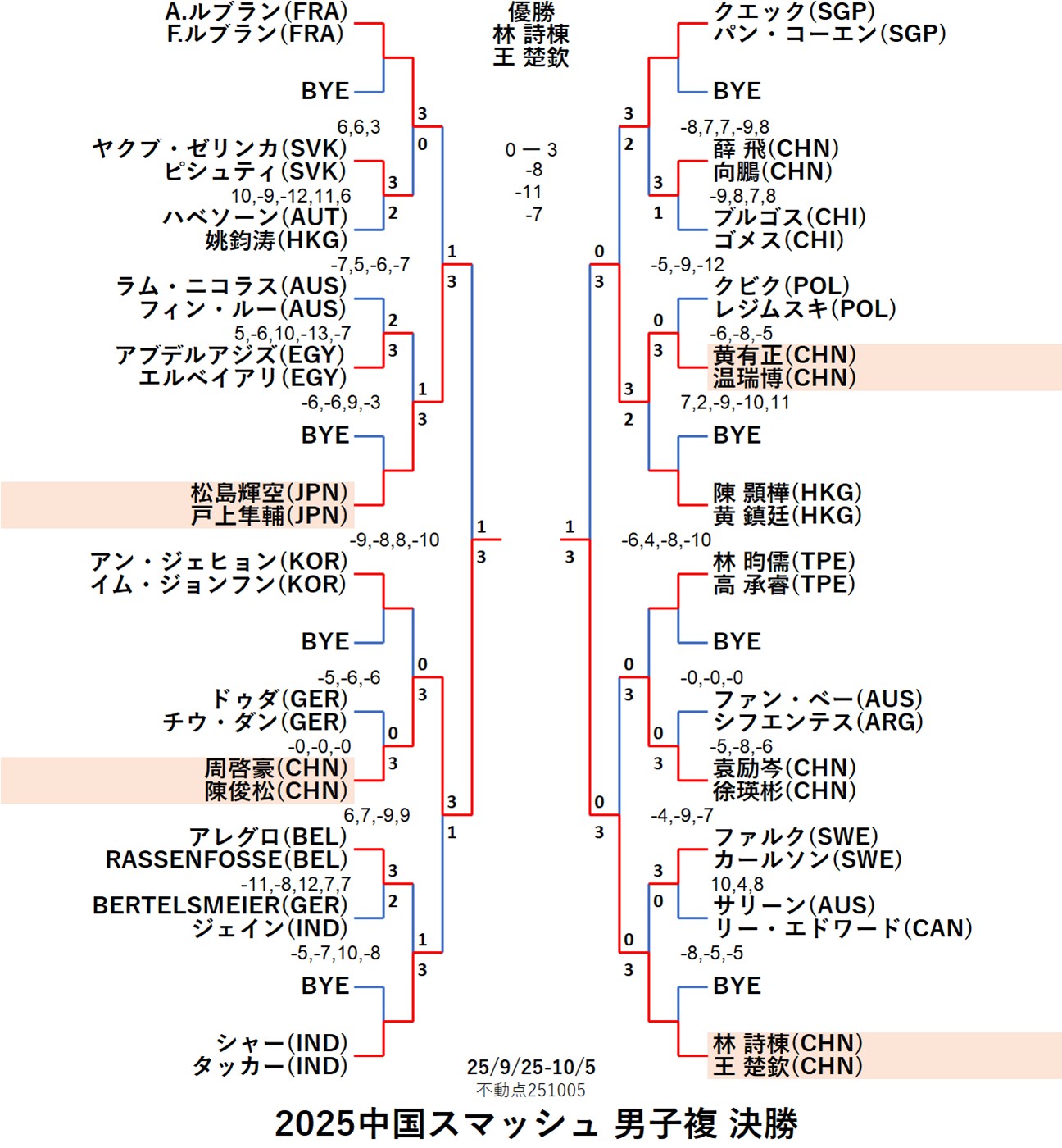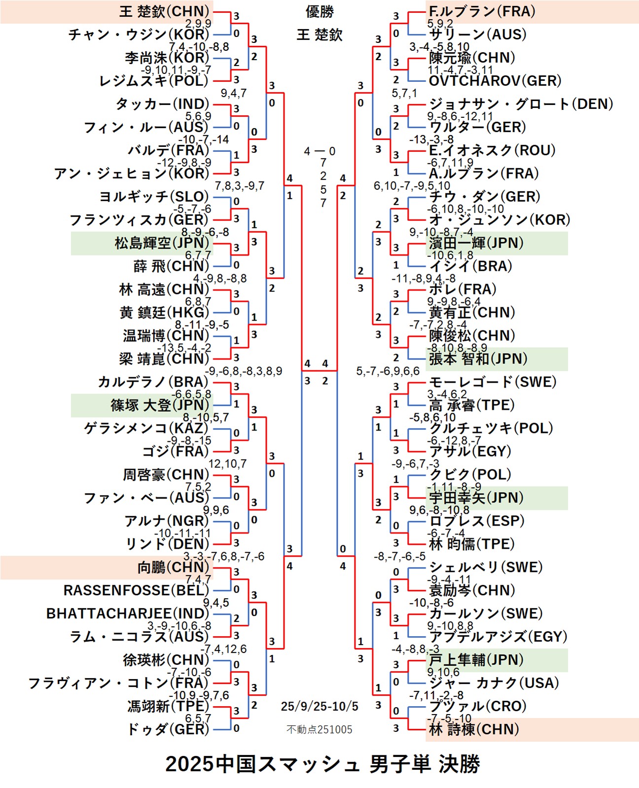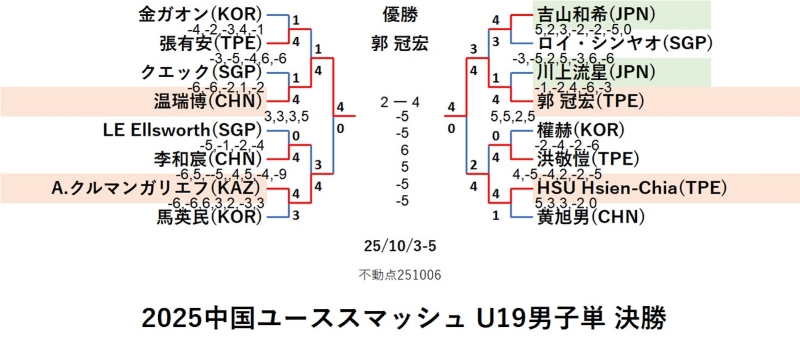 2025WTTチャイナ ユーススマッシュU19 男子単