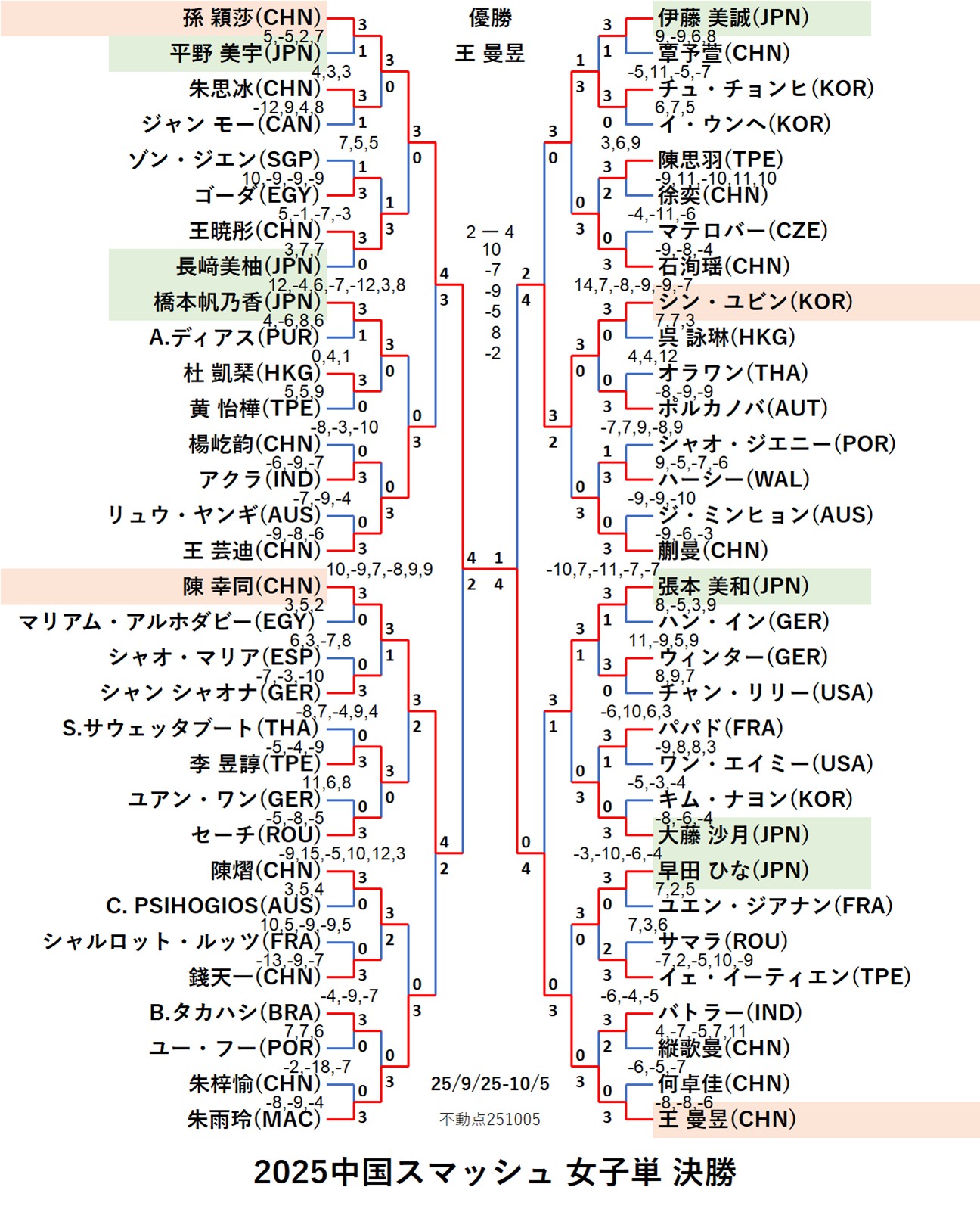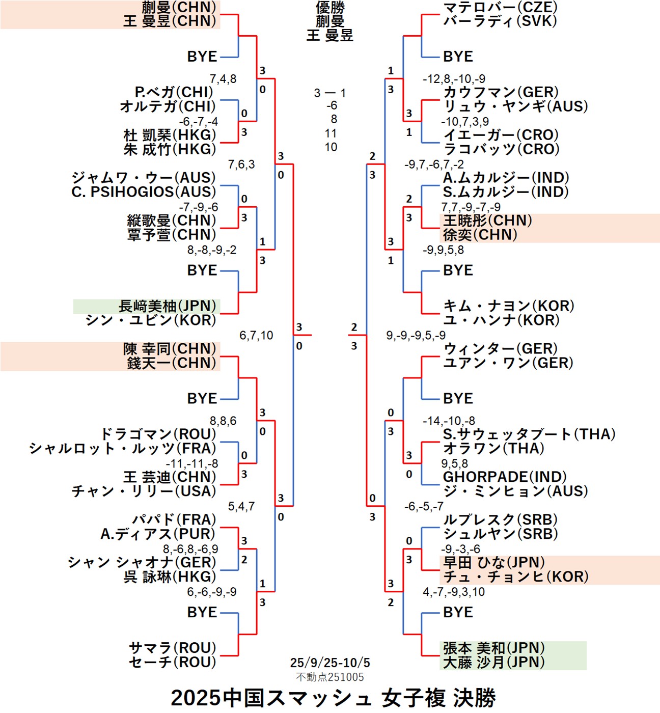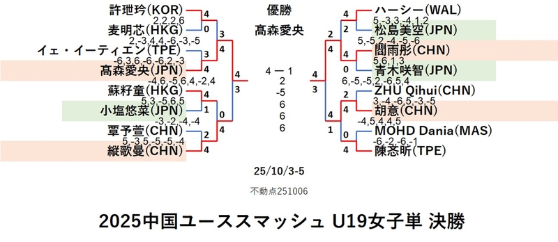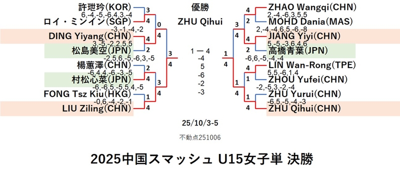 2025WTTチャイナ ユーススマッシュU19 女子単 (2025年10月03日〜10月05日 北京)