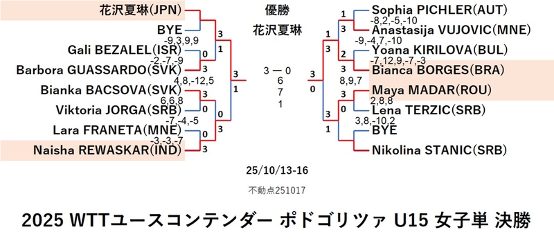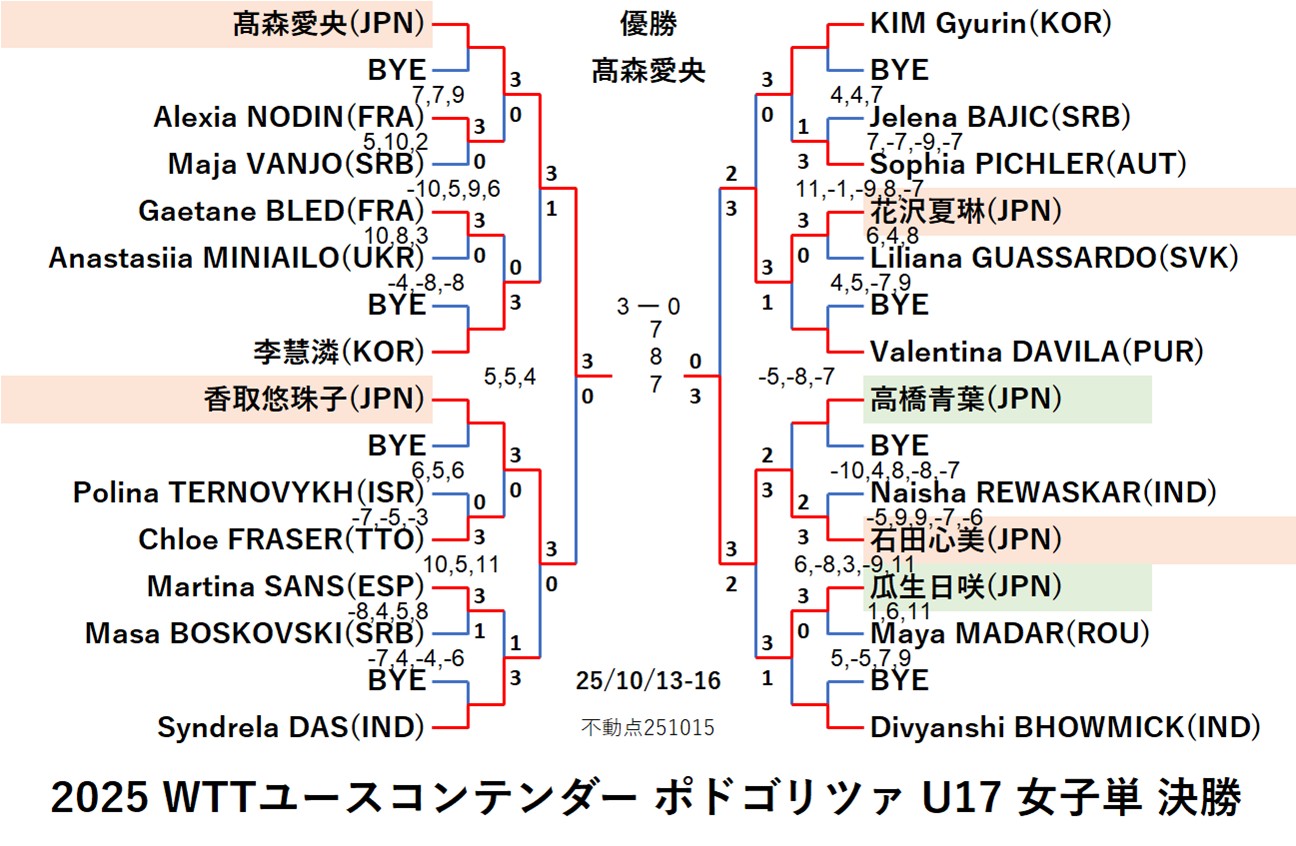 2025 WTTユースコンテンダー ポドゴリツァU19女子単(2025年10月13日〜10月16日 モンテネグロ)