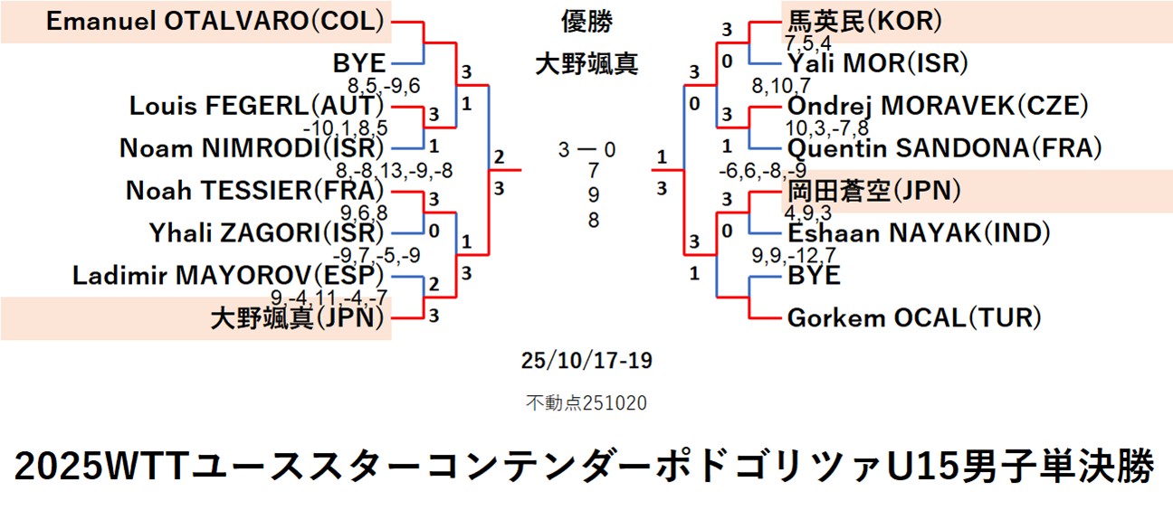 2025 WTTユーススターコンテンダー ポドゴリツァU15男子単
