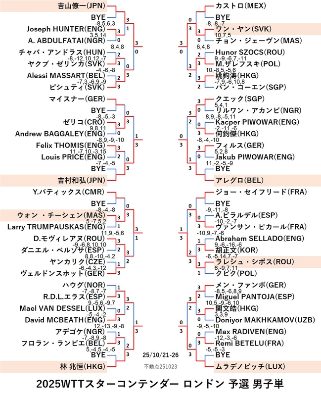 2025 WTTスターコンテンダー ロンドン予選 男子単