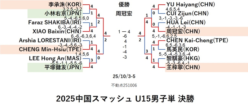 2025WTTチャイナ ユーススマッシュU15 男子単