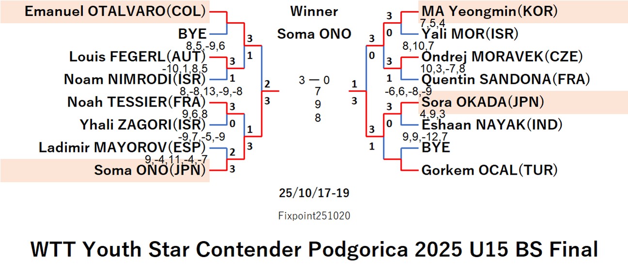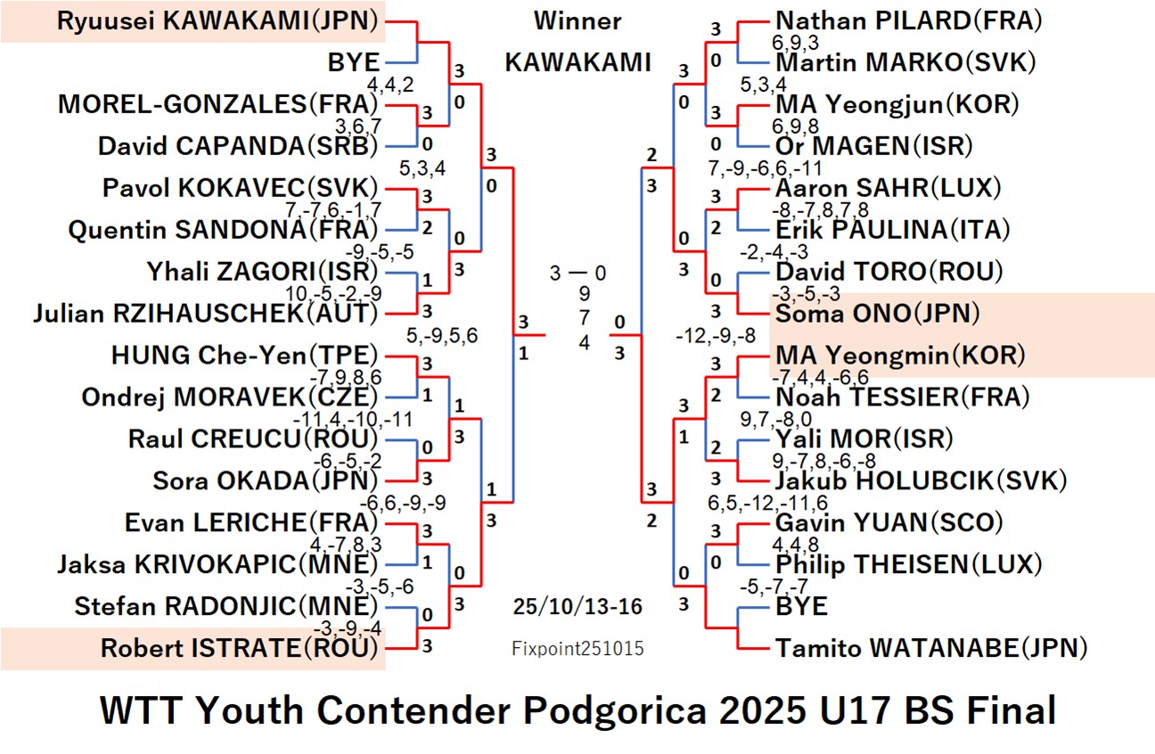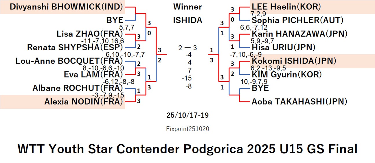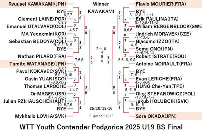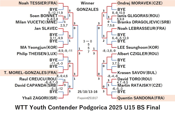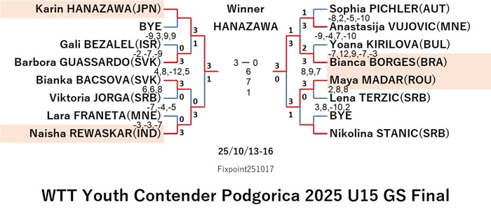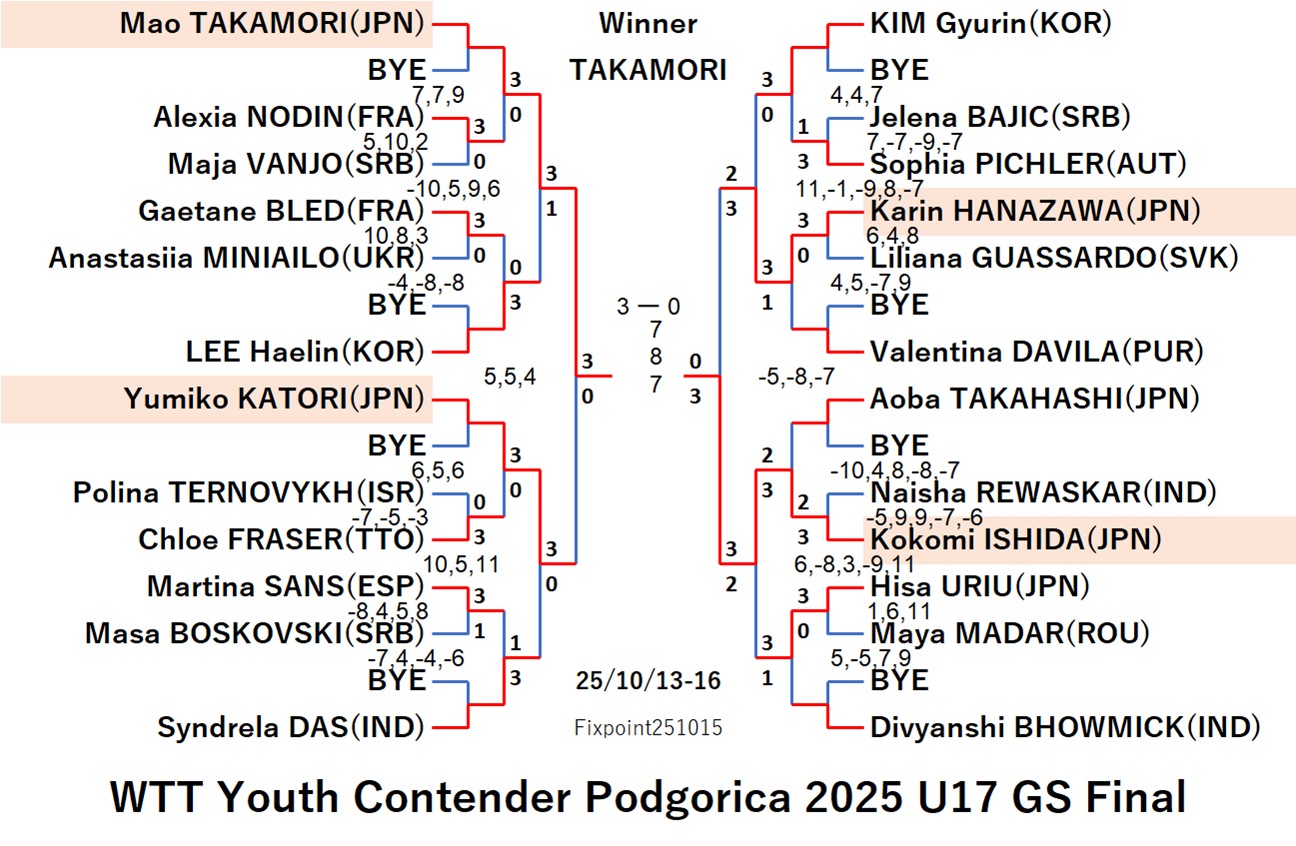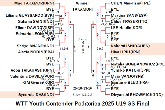 WTT Youth Contender Podgorica 2025U19 GS (2025/10/13〜10/16 Montenegro)