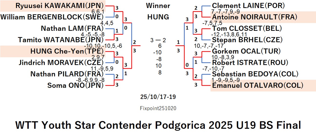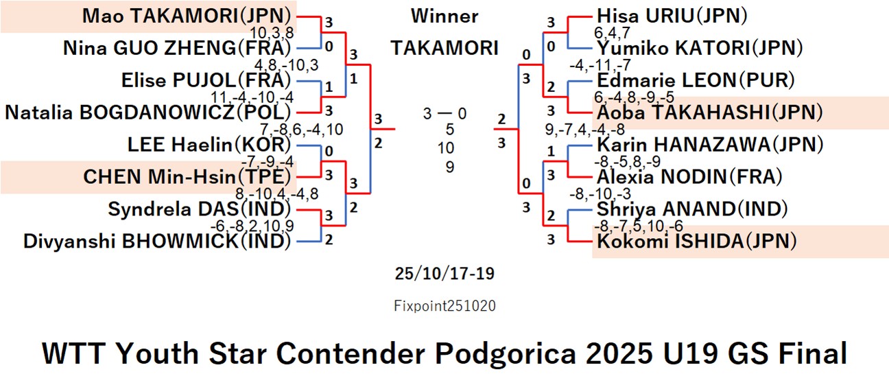 WTT Youth Star Contender Podgorica 2025 U19 GS (2025/10/17〜10/19 Montenegro)
