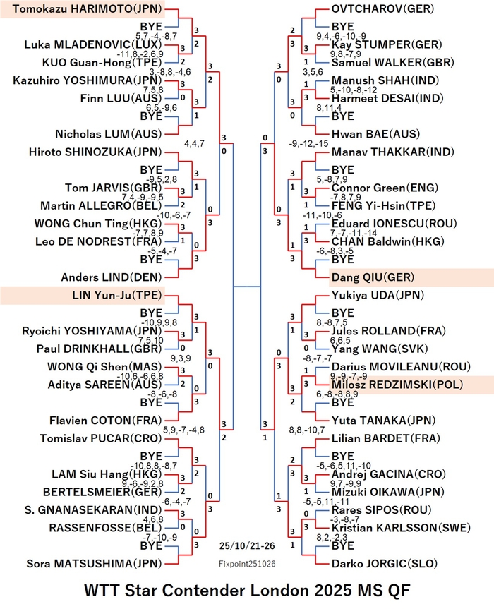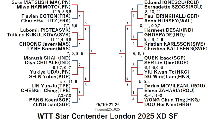 WTT Star Contender London 2025 WS (2025/10/21〜10/26)