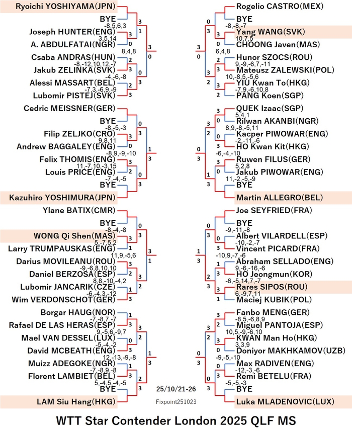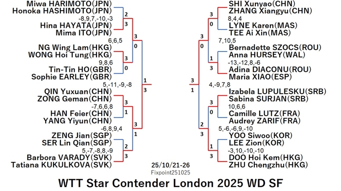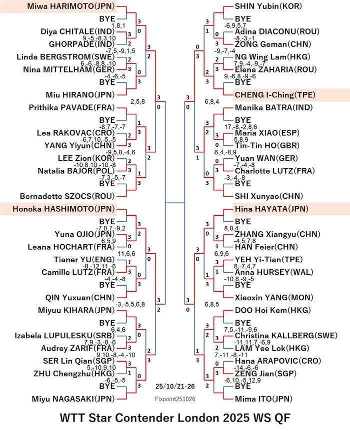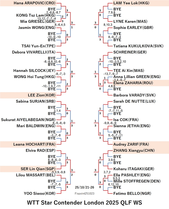 WTT Star Contender London 2025 QLF WS (2025/10/21〜10/22)