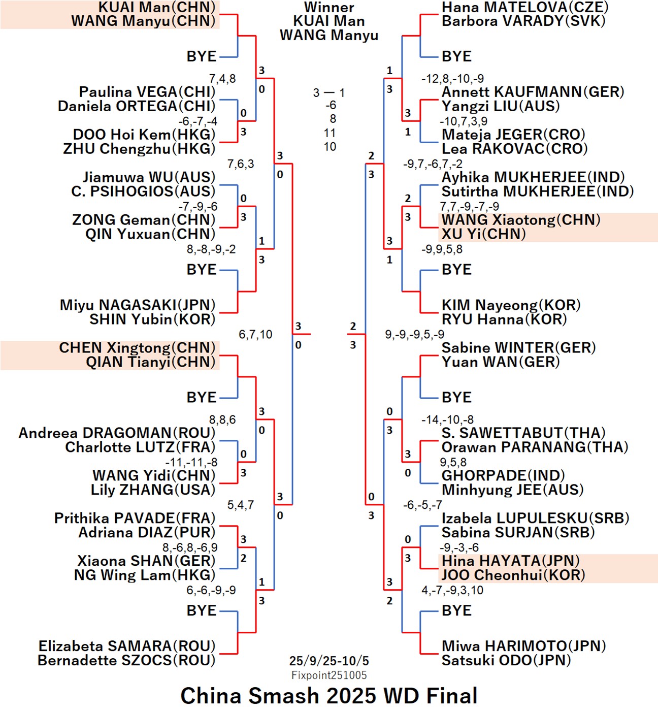 WTT Champions Macao 2025 WS (2025/09/9〜09/14 China)