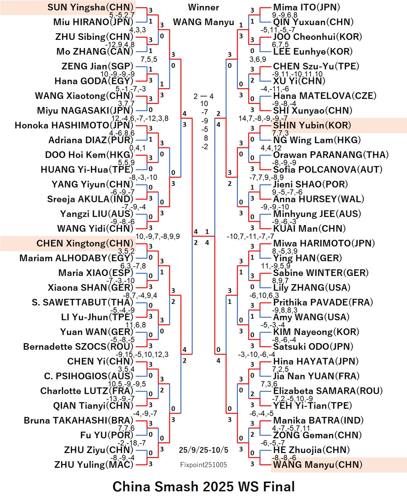 WTT Champions Yokohama 2025 WS (2025/08/07〜08/11 Japan)