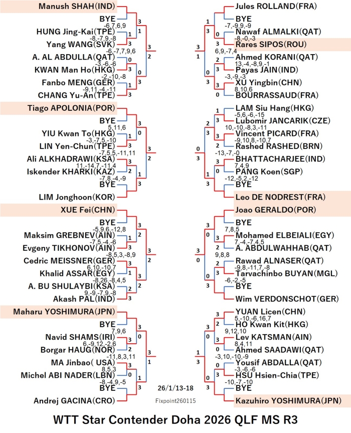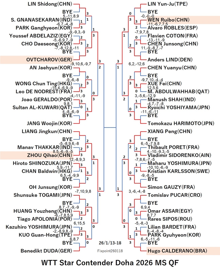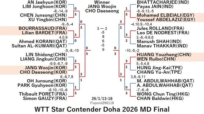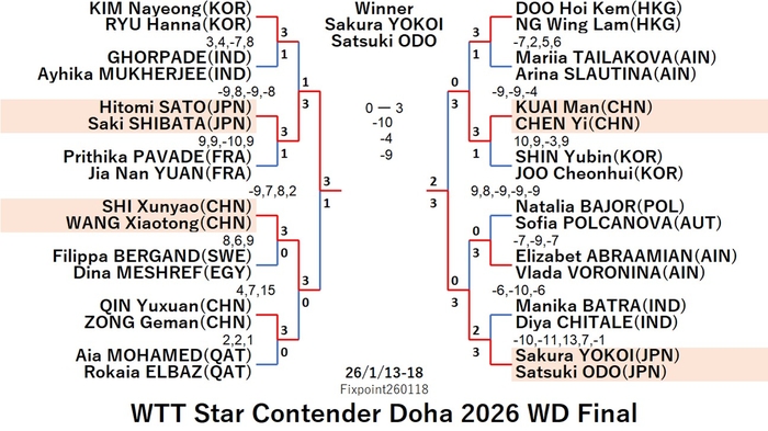 WTT Star Contender Doha 2026 WS (2026/1/13〜18 Qatar)