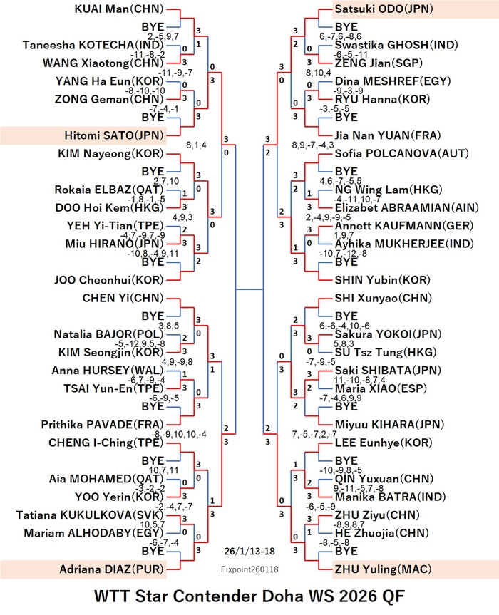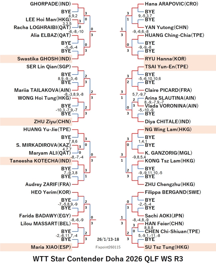 WTT Star Contender Doha 2026 QLF WS (2026/1/13〜18 Qatar)