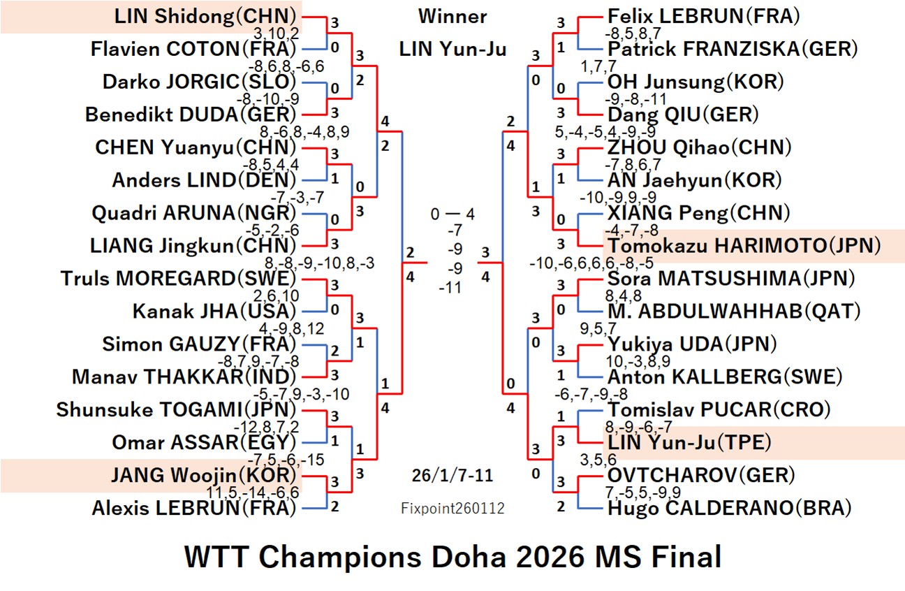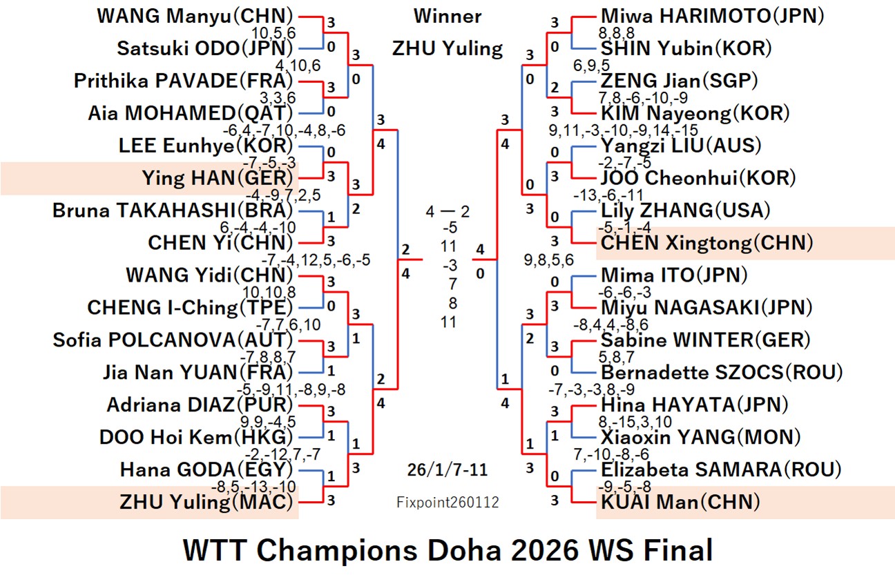 WTT Champions Doha 2026 WS (2026/1/7〜11 Qatar)