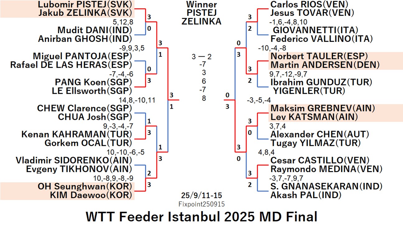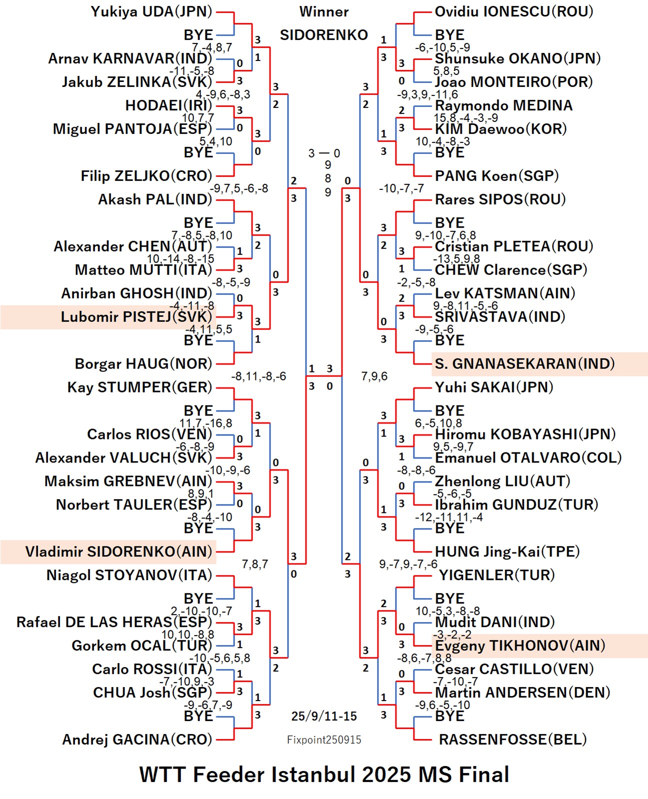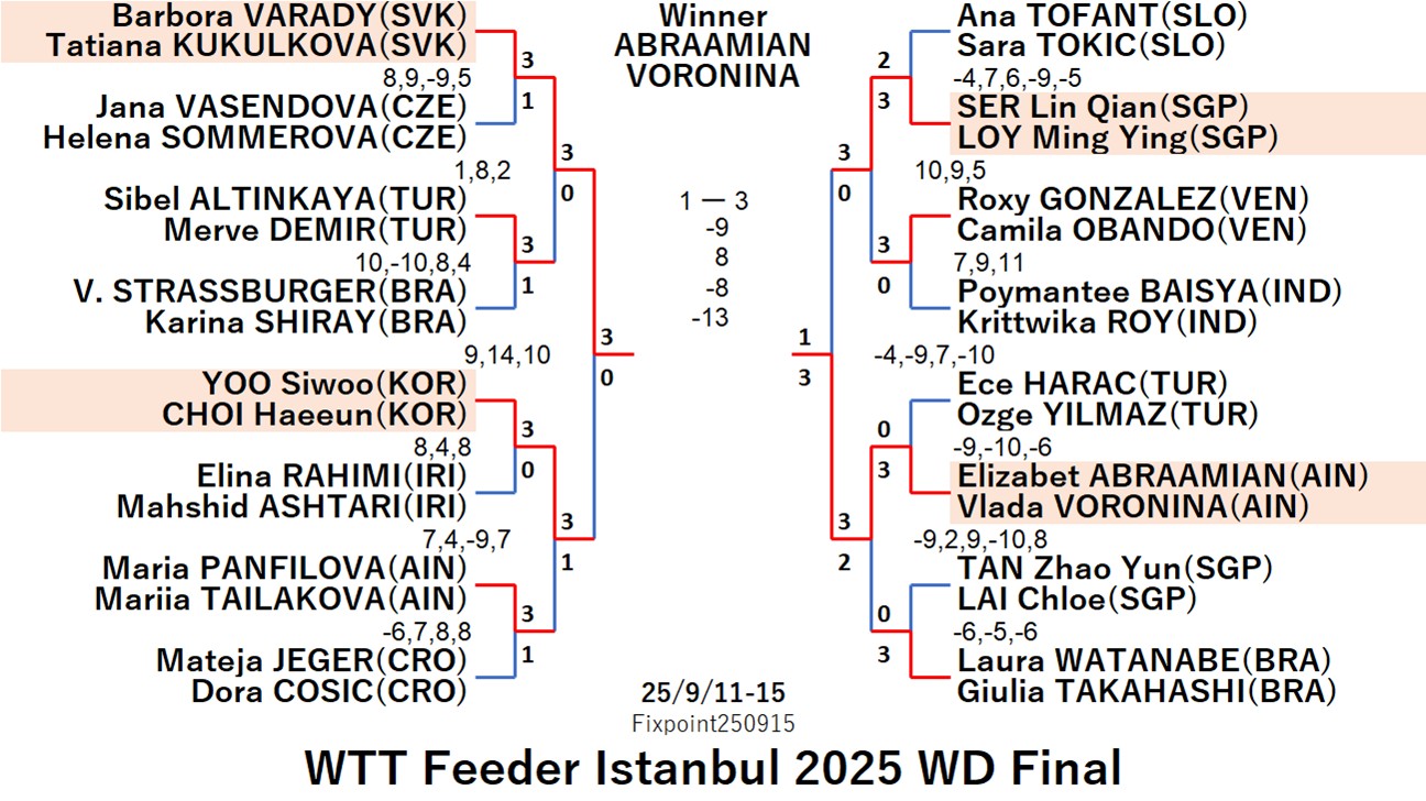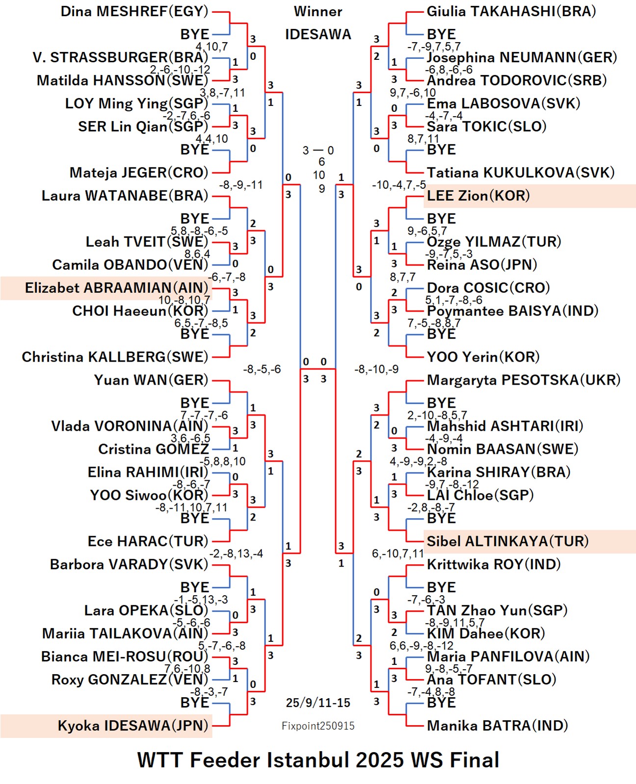 WTT Feeder Istanbul 2025 WS (2025/09/11〜09/15 Türkiye)