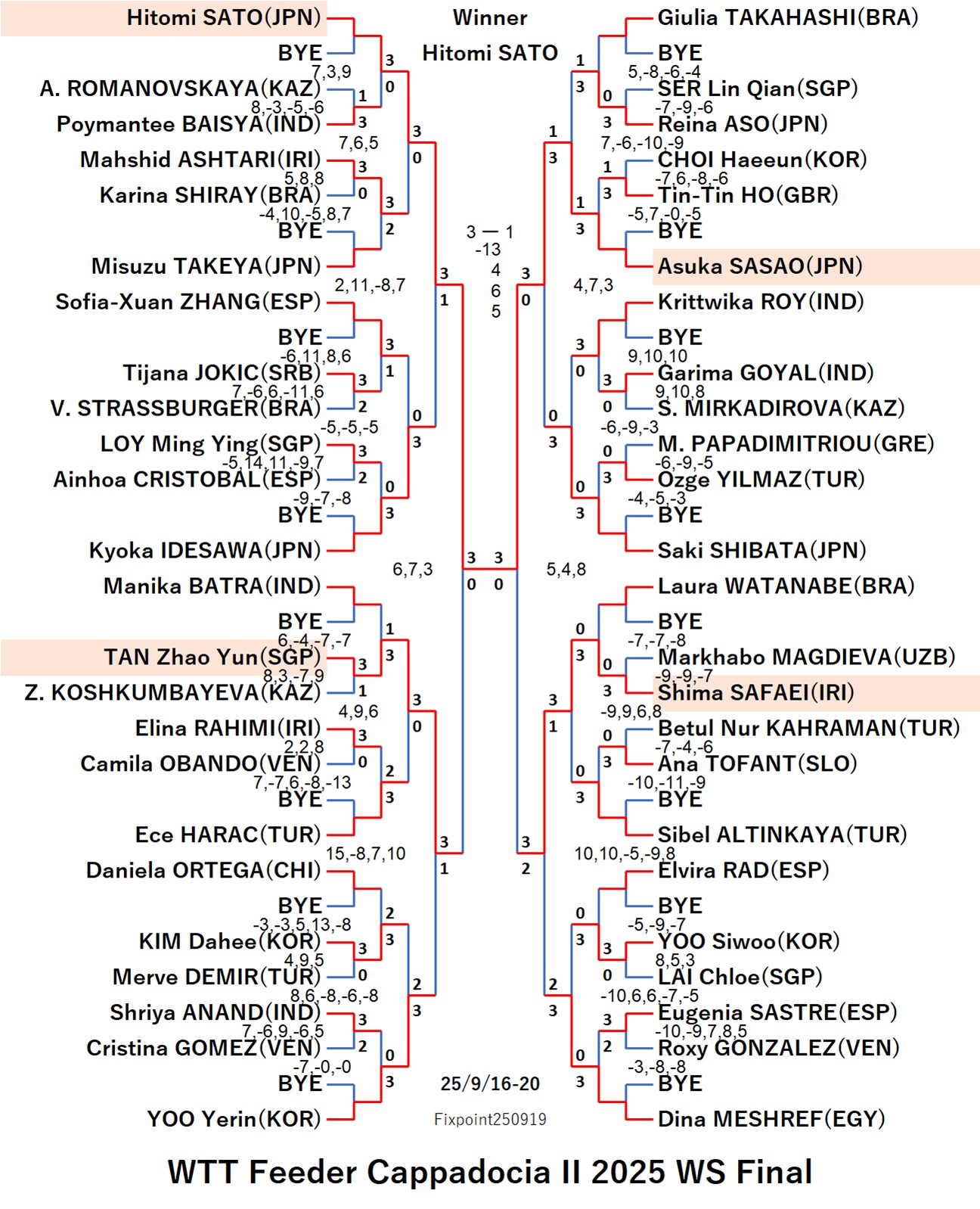 WTT Feeder Cappadocia II 2025 WS (2025/09/16〜09/20 Türkiye)