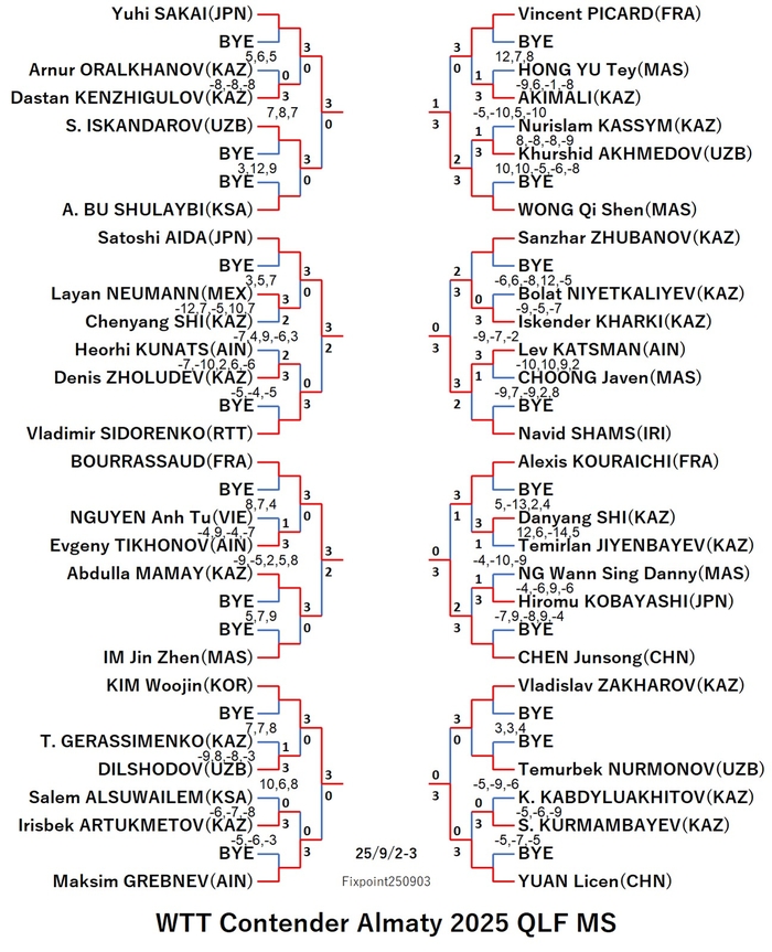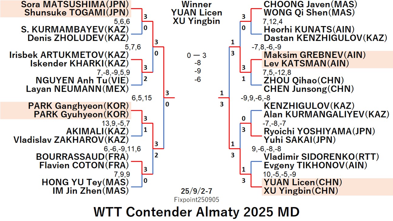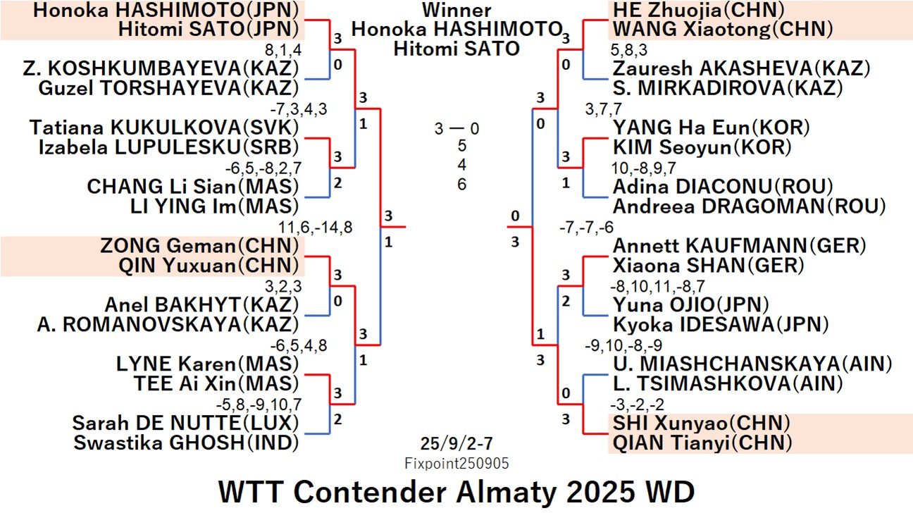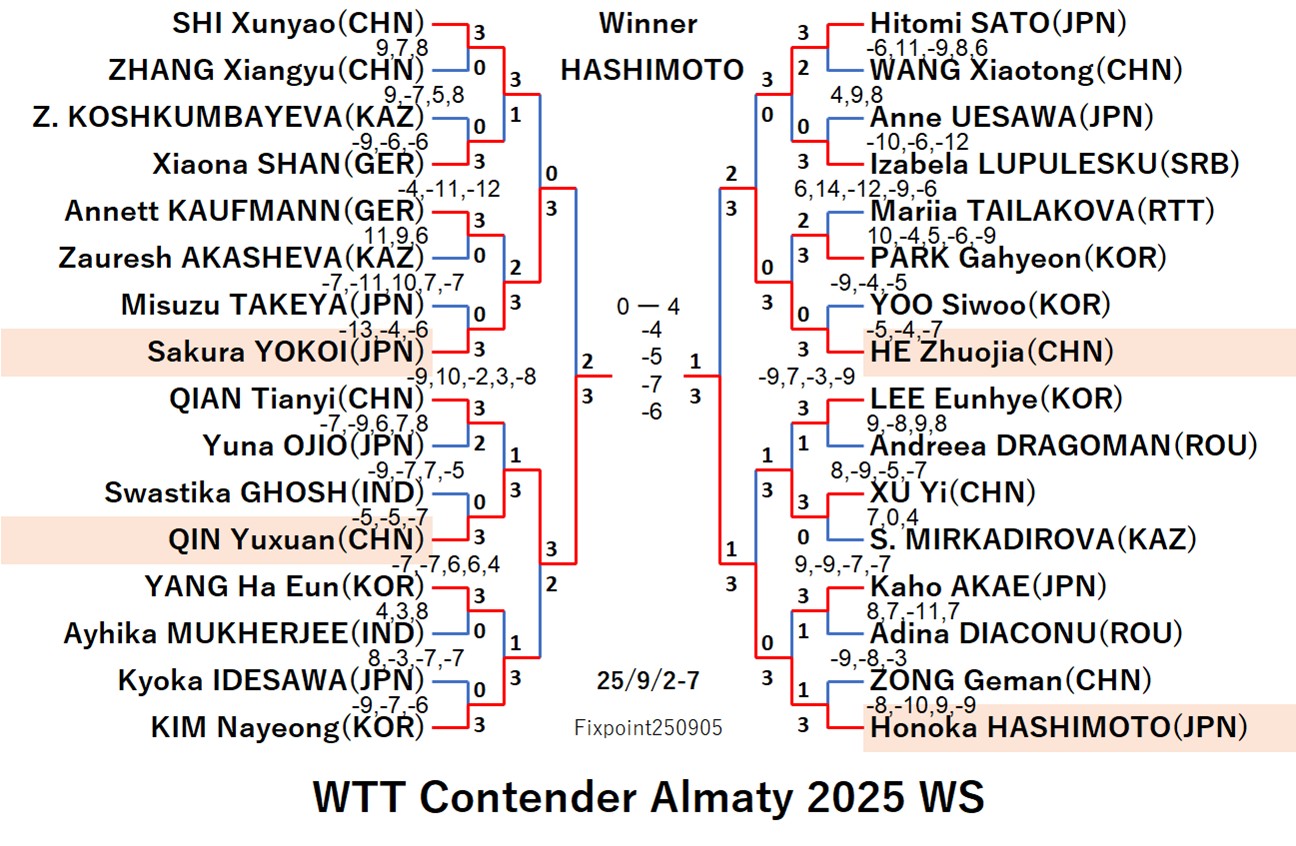 WTT Contender Almaty 2025 WS (2025/09/2〜09/7 Kazakhstan)