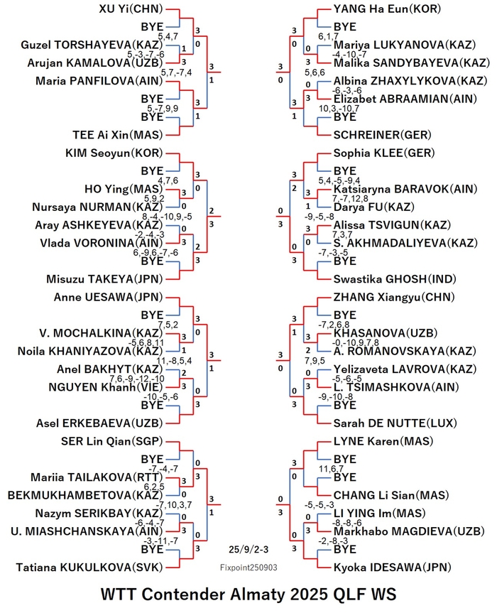 WTT Contender Almaty 2025 QLF WS (2025/09/2〜09/3 Kazakhstan)