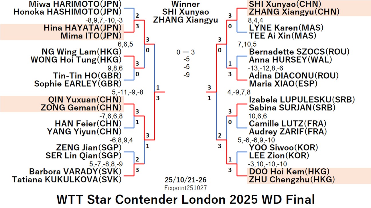 WTT Star Contender London 2025 QLF WS (2025/10/21〜10/22)