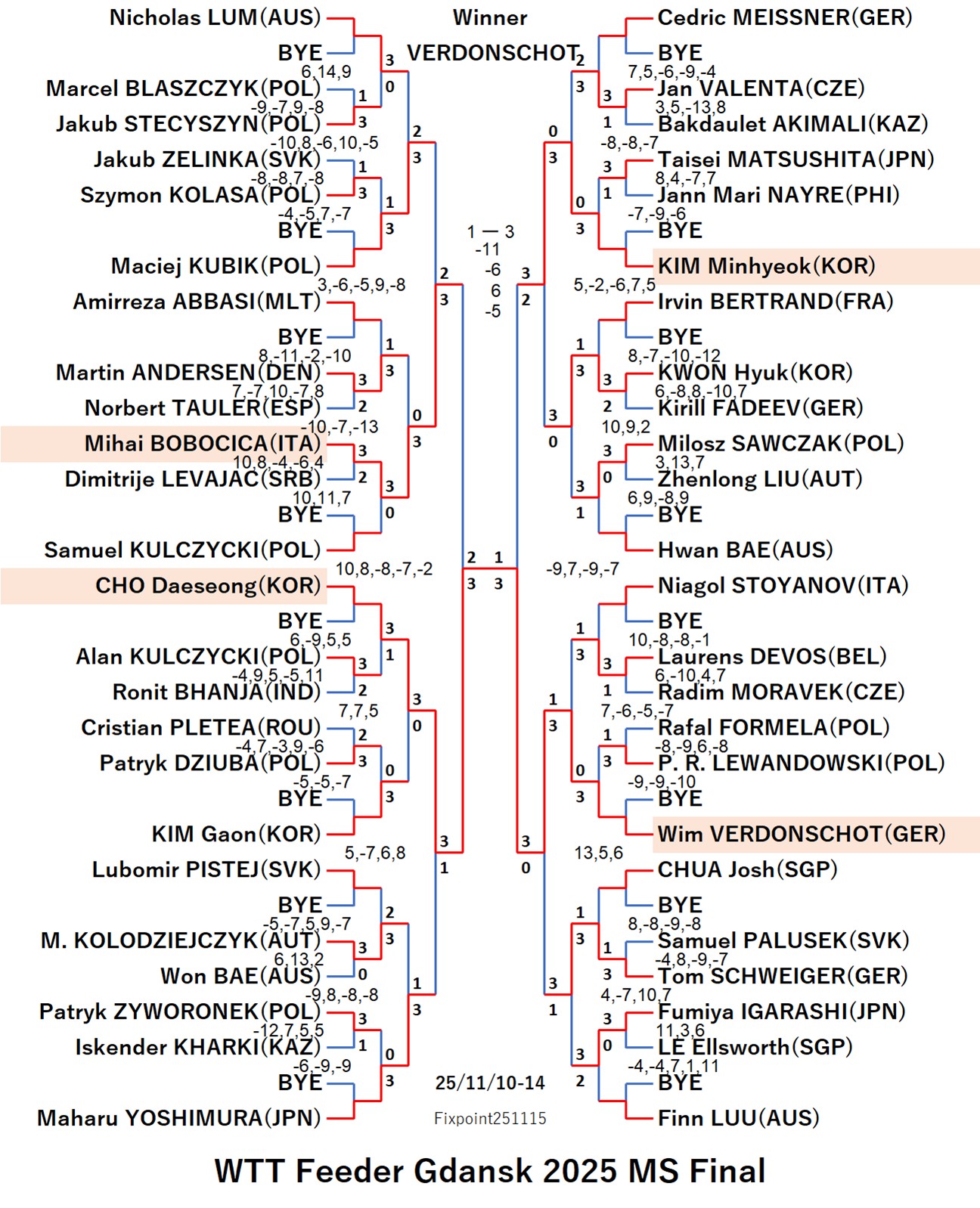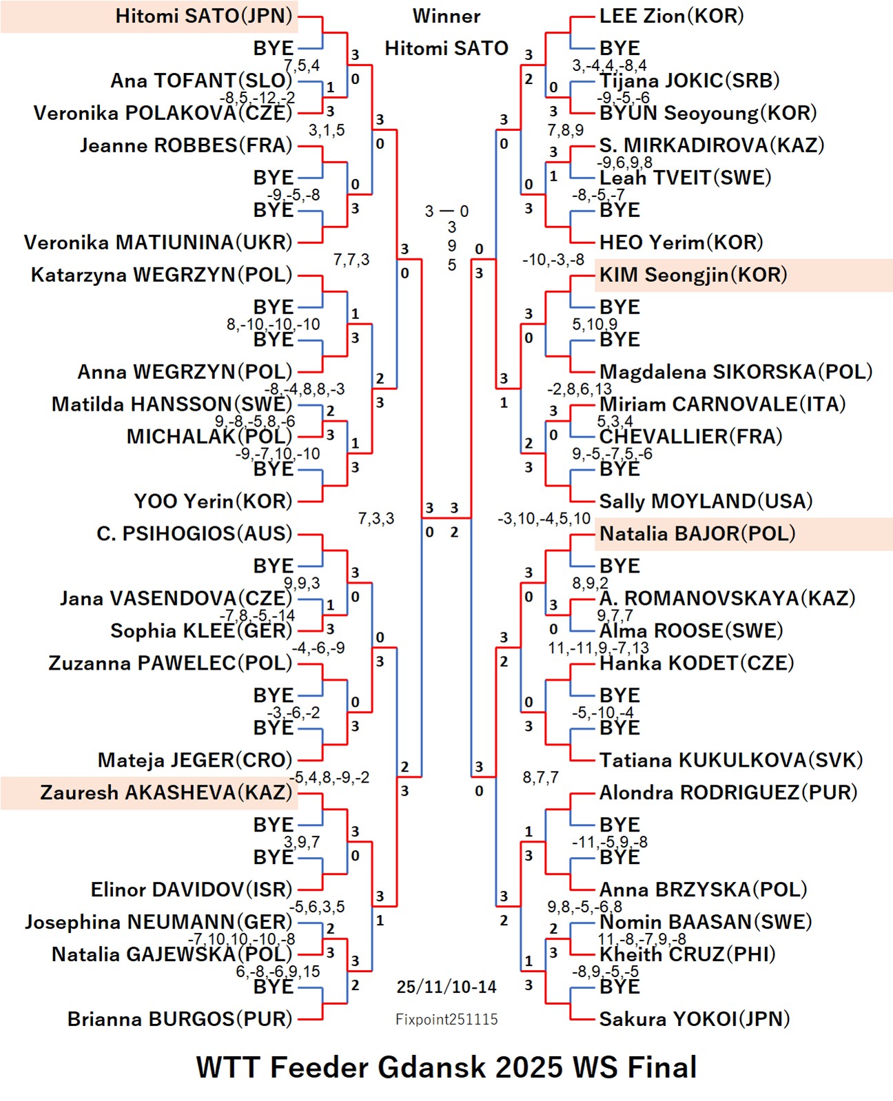 WTT Feeder Gdansk 2025 WS (2025/11/10〜11/14 Poland)