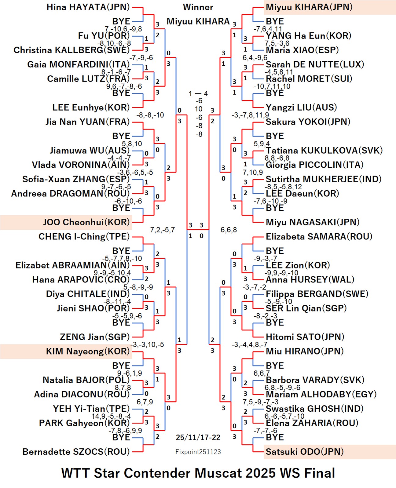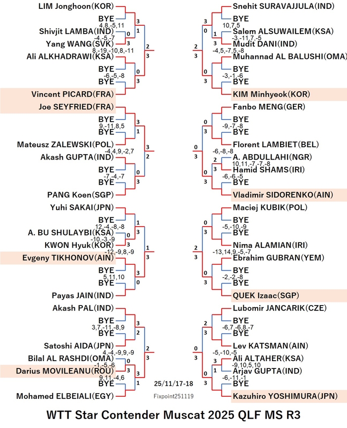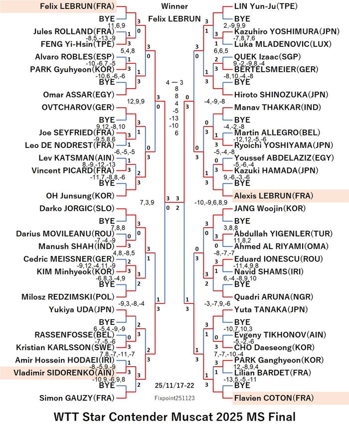 WTT Star Contender Muscat 2025 WS (2025/11/17〜11/22 Oman)