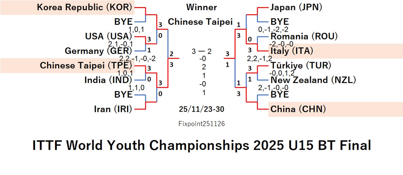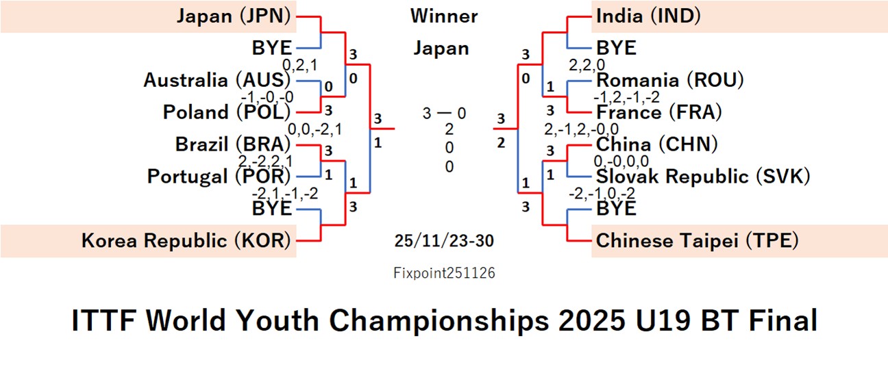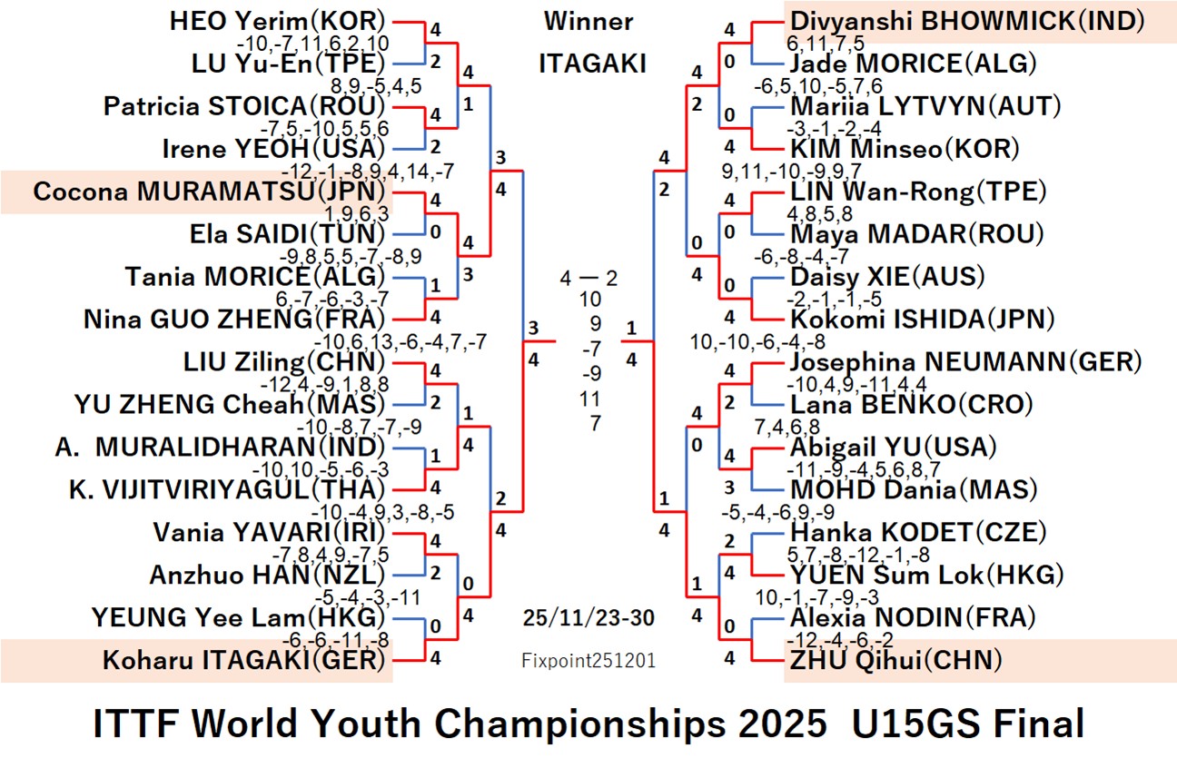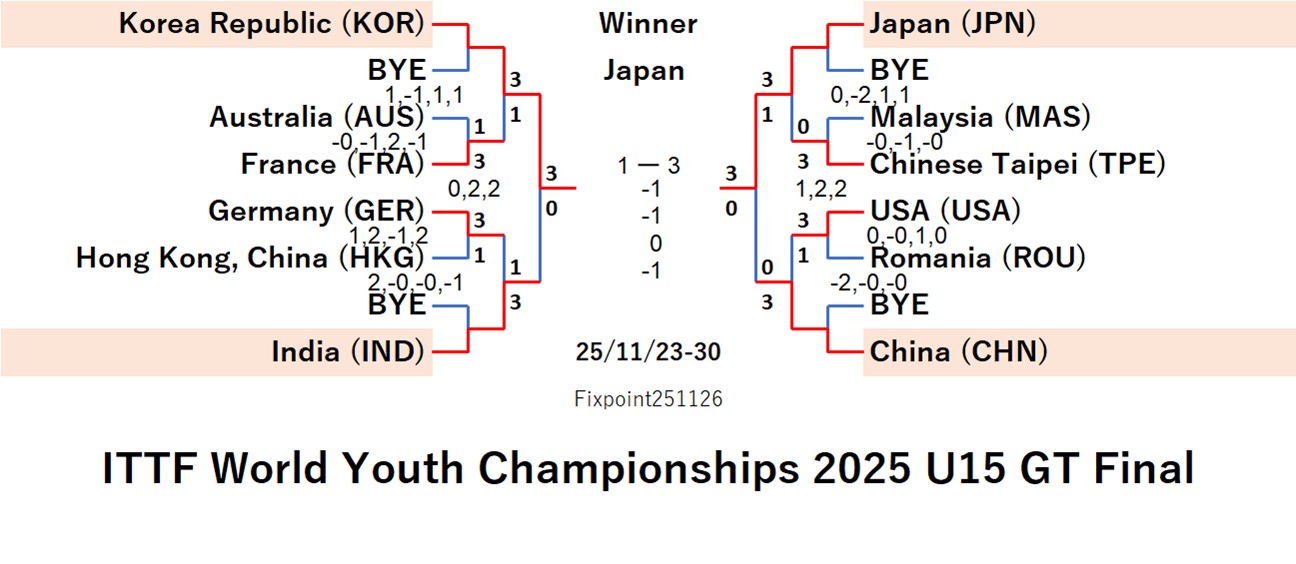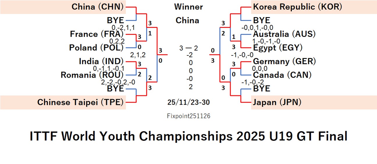 ITTF World Youth Championships 2025 U19 GT (2025/11/23/〜11/30 Romania)