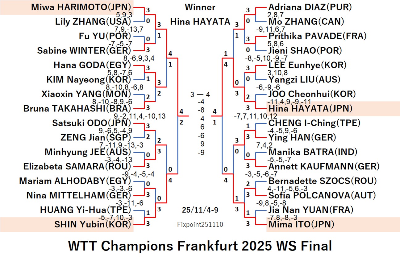 WTT Champions Frankfurt 2025 WS (2025/11/04〜11/09 Germany)