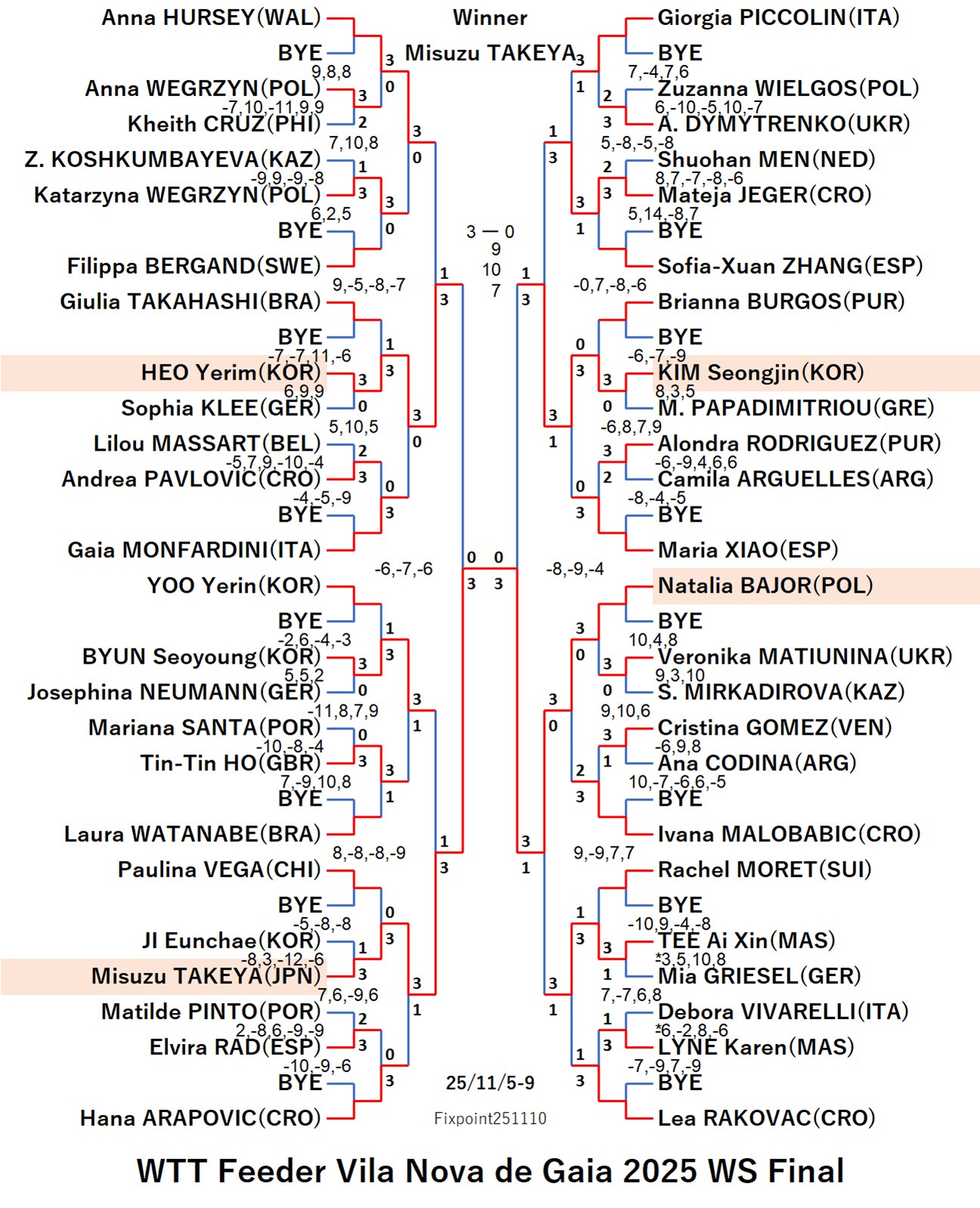 WTT Feeder Vila Nova de Gaia 2025 WS (2025/11/05〜11/09 Portugal)