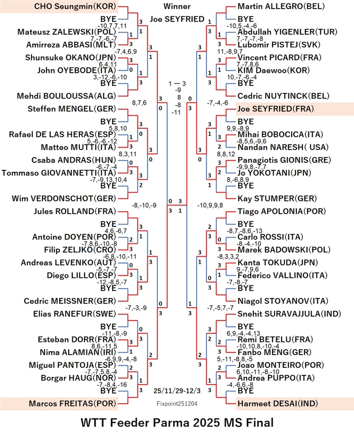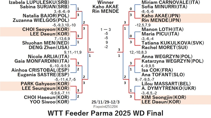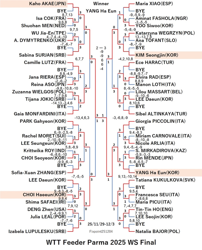 WTT Feeder Parma 2025 WS (2025/11/29〜12/03 Italy)