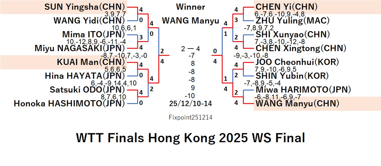 WTT Finals Hong Kong 2025 WS (2025/12/10〜12/14 China)
