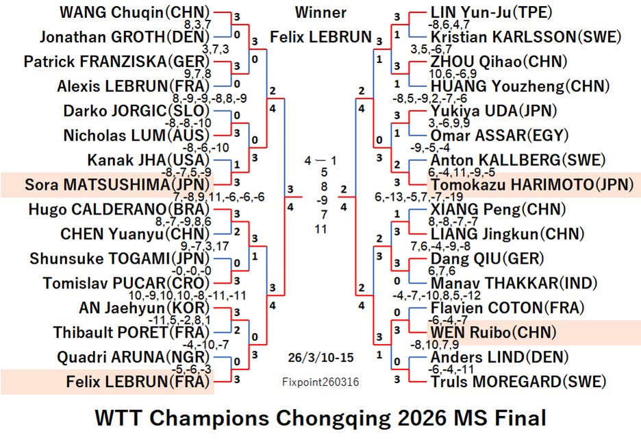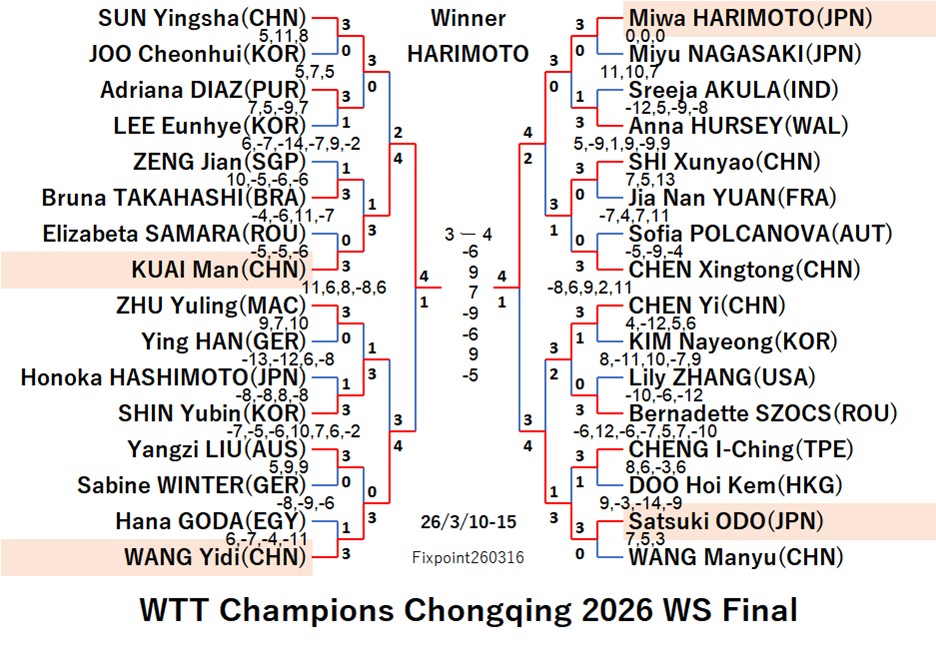 WTT Champions Chongqing 2026 WS (2026/3/10〜3/15, China)