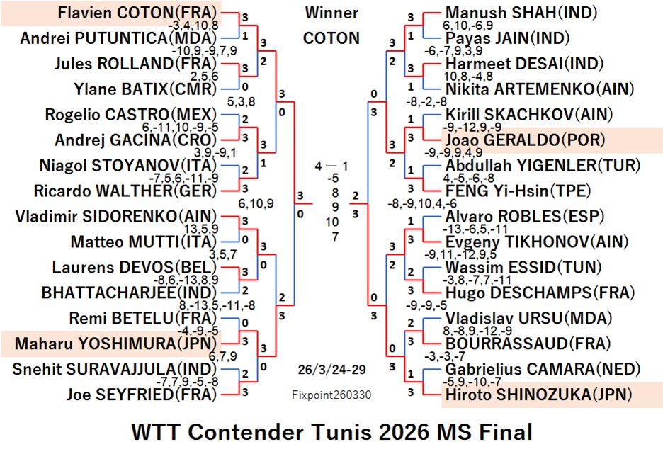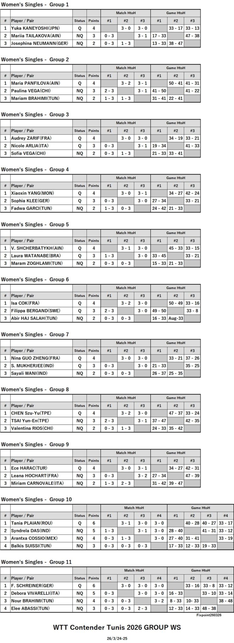 WTT Contender Tunis 2026 GROUP WS (2026/3/24〜3/25, Tunisia)