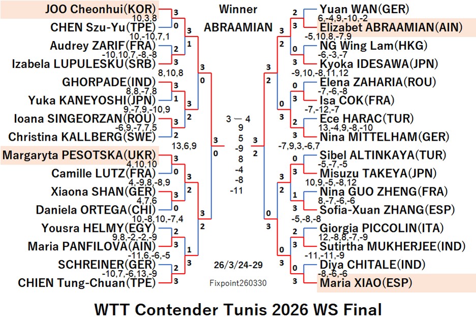 WTT Contender Tunis 2026 WS (2026/3/24〜3/29, Tunisia)